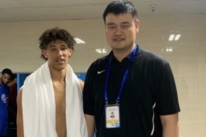 海斯晒出了一张他在训练后和姚明的合影。