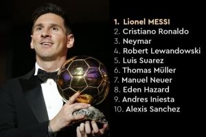 体育资讯8月24日讯 日前,金球奖官方回顾了2015年金球奖排名前十的球员,梅西最终得奖。